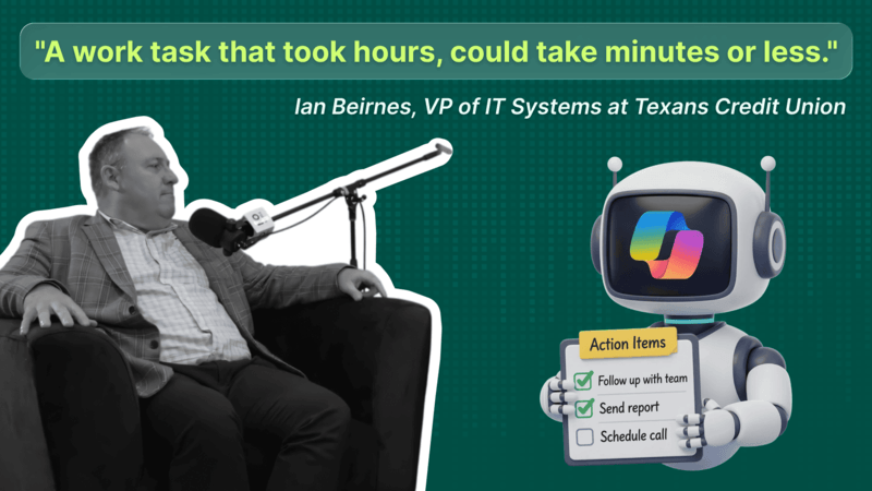 Backed by CEO David Frazier and the executive leadership team, VP of IT Systems Ian Beirnes helped lead Texans Credit Union’s move to Microsoft Azure and Microsoft 365. The team rolled out Microsoft Copilot with Microsoft Purview’s permissions and labeling controls as a key part of the security model. They blocked all other AI tools entirely so every data interaction would flow through Copilot’s controlled environment. Staff quickly found that tasks that took hours dropped to minutes, particularly for meeting notes, action items, and Excel-based financial analysis.